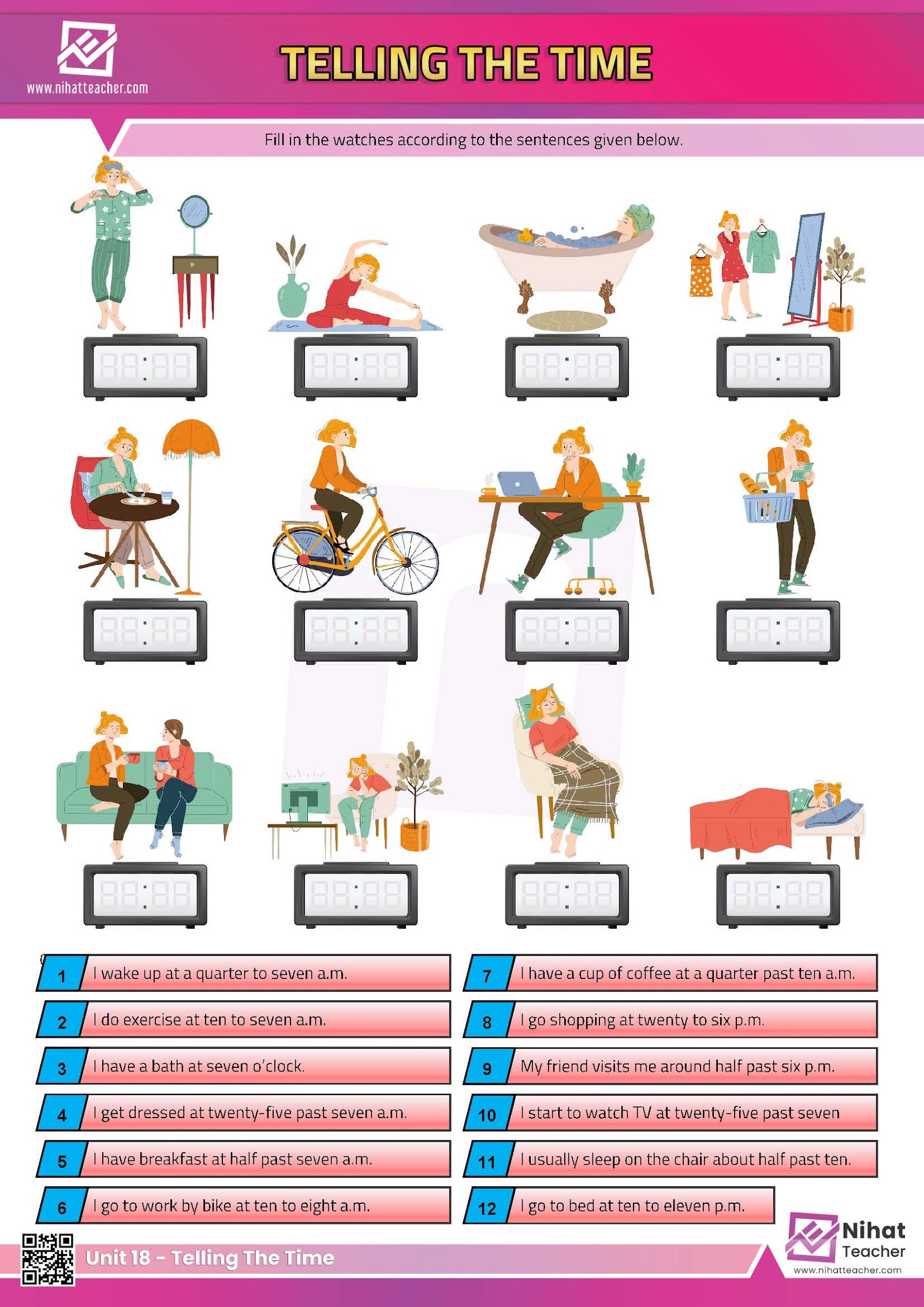 #download#Click here to download a printable PDF worksheet about telling the time in English.
