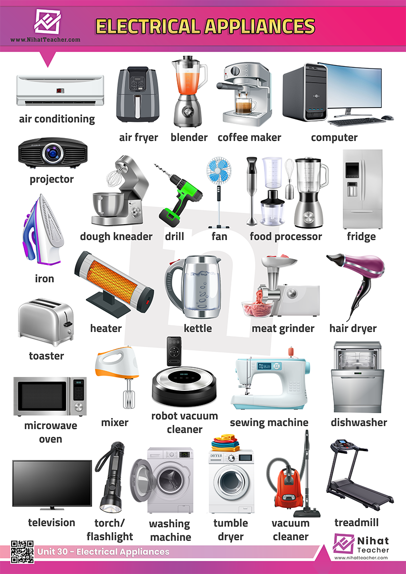#download# Click here to download a PDF vocabulary poster about electrical appliances in English.